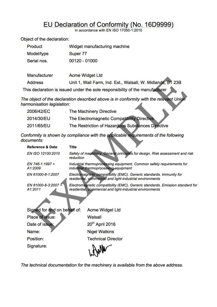 簽署符合標準聲明是產品獲得CE安全標志的最后一步。簽署了符合標準聲明意味著你保證產品滿足相關的所有CE指令。